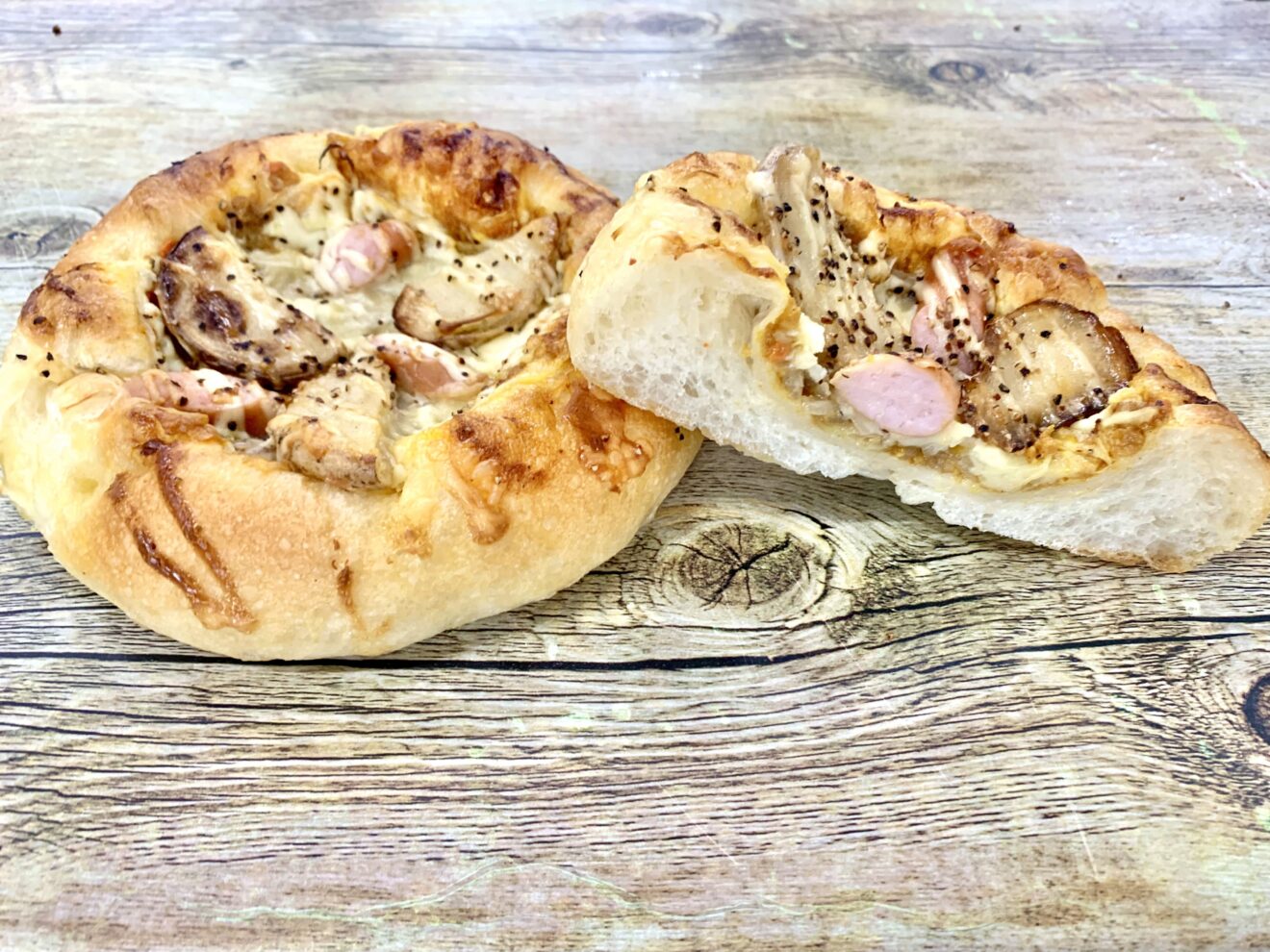 全粒粉の生地にジューシーなあらびきウインナーを巻き込みました。